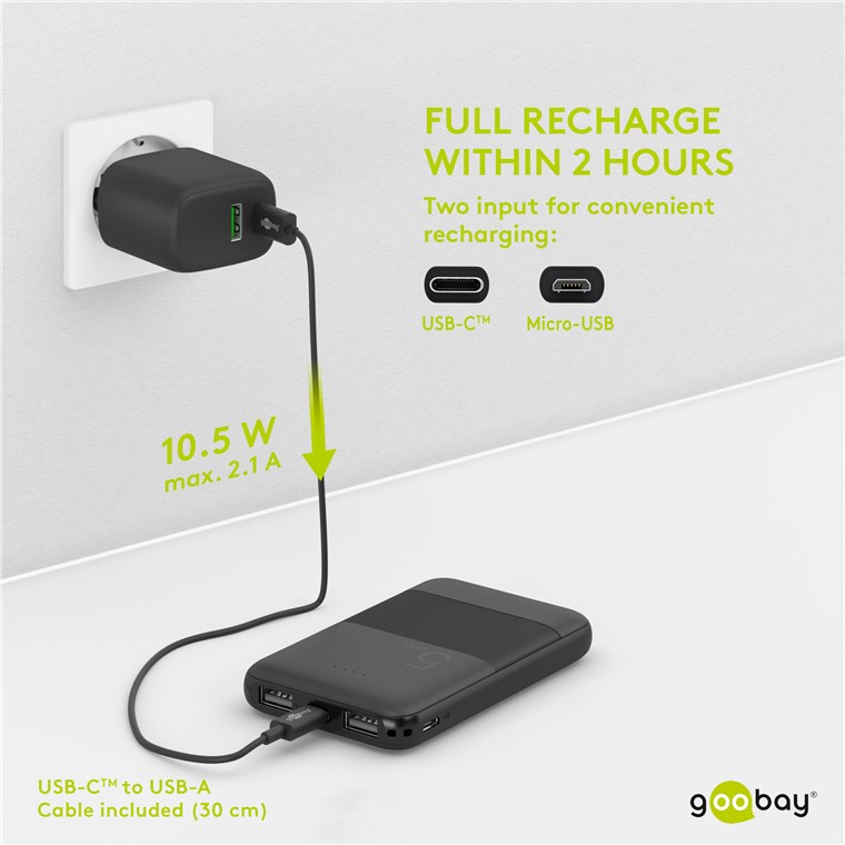 Powerbank kompakt 5.000 mAh - Leistungsstarke 5.000 mAh in einem handlichen wie griffigen Design, perfekt für unterwegs