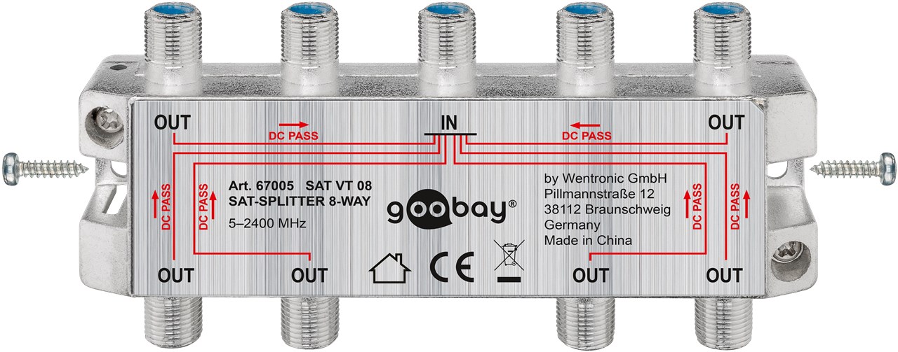 SAT-Verteiler, 8-fach - Ausgang, Anzahl 8 x out - für Satellitenanlagen 5 MHz - 2400 MHz